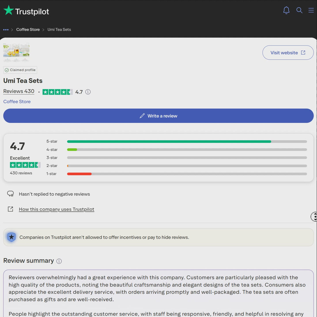 Hill Samantha"Umi tea sets customer services is very helpful."